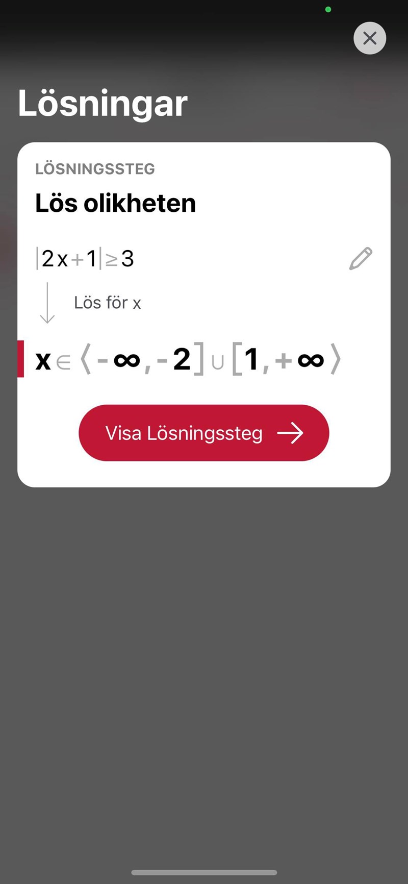 Det är rätt, förutom hur du sammanfattar svaret. Dina lösningar säger att antingen är x minst 1, eller så är x max -2. Men det är inte ett sammanhängande intervall, så du kan inte skriva -2x1-2\geq x \geq 1. Den notationen antyder att olikheterna gäller samtidigt: "x är max -2 och minst 1". Såna tal är det ont om =)
