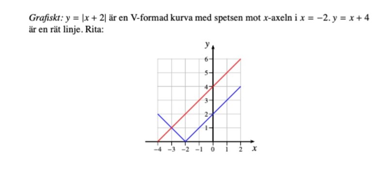 Då x+2 \geq 0 (dvs då x \geq -2) så är |x+2| = x+2, så i detta område är grafen  y = x+2.