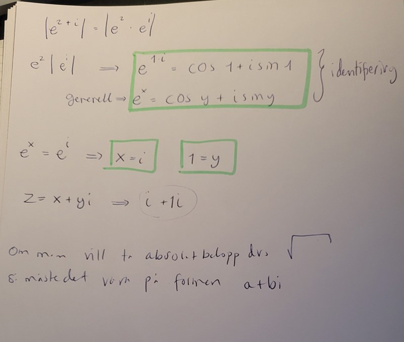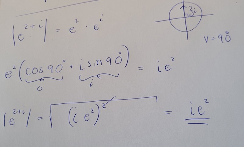 Istället kan du använda att , och beloppet av detta ges helt enkelt av . Sen spelar argumentet faktiskt ingen roll här, eftersom för något lämpligt , så att beloppet av ges av .