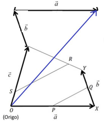 Aah, det blir ZY = -c + a + b. Ändring av riktning av vektorn c gör att den går från Z till Y