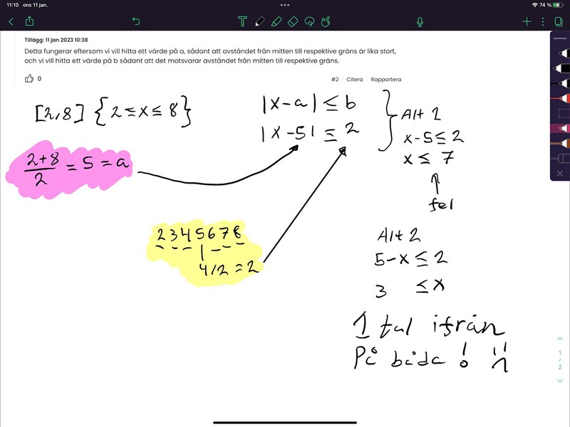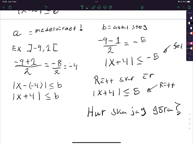 jarenfoa skrev:Smutstvätt skrev:2. Beräkna avståndet mellan gränserna, och dividera med två. Detta är talet b.