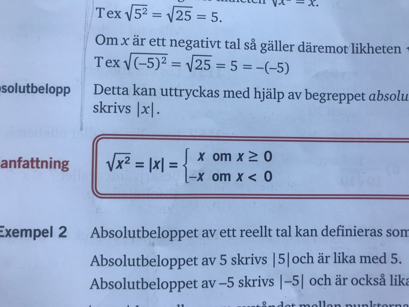 • varför det gäller att |x|=x|x|=x om x0x\geq0 och |x|=-x|x|=-x om x<0x<0?