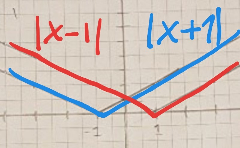 Vilken kurva ligger överst vid x = -1, respektive x = 1?