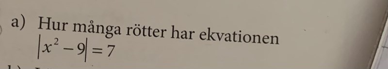 Den andra för att absolutbeloppet gör att minustecknet försvinner, så om det står -7 inne i absolutbeloppet är det också lösningar. Hur många lösningar kommer vi få? (du behöver inte räkna ut dem...om de inte ber om det i en senare deluppgift förstås).