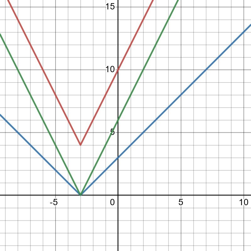 Hej, har fastnat hur man skissar en graf till svårare absolutbelopp som till f(x)= 2 lx+3l + 4 kommer jag ingen vart. Ritade upp på grafritande verktyg men förstod inte varför den abrupt slutar när x=-3 och y=4.