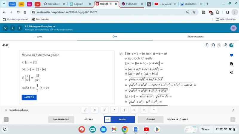 * betecknar komplexkonjugering. Jag utnyttjar att för alla komplexa tal z.