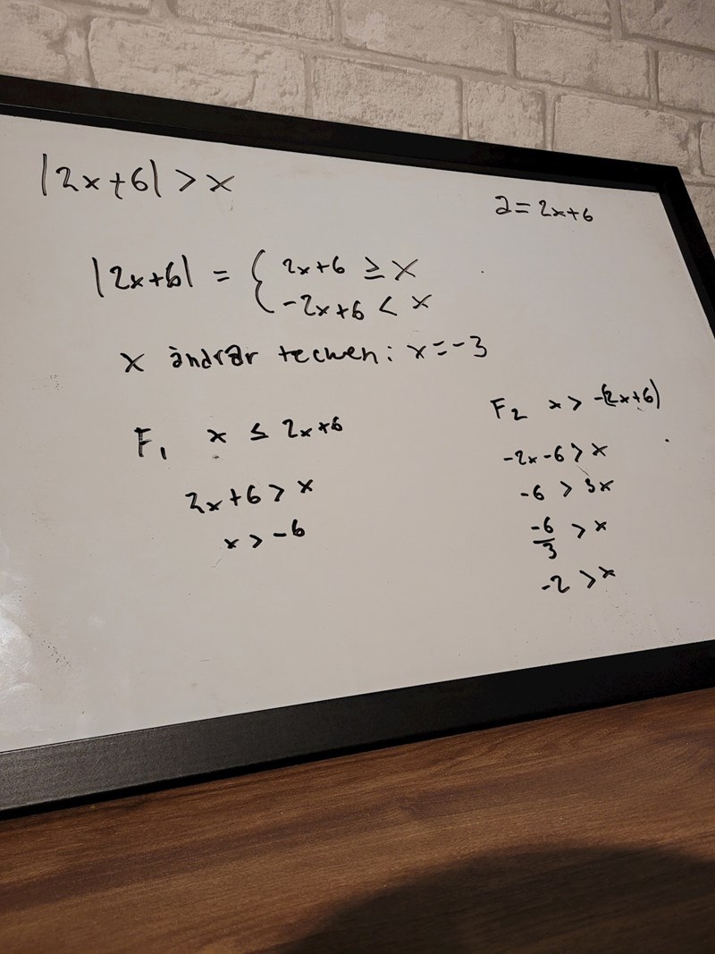 Jag försöker härma den inledande exempelfuppgiften som löser olikheten |2x + 1| > 5. Det borde ju vara vara så enkelt som att bara byta ut siffrorna.