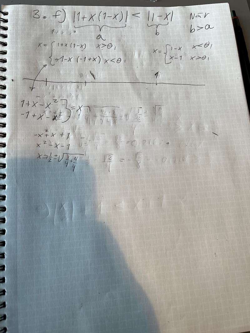 Till höger skriver du att x = 1-x då x < 0 och att x = x-1 då x > 0.