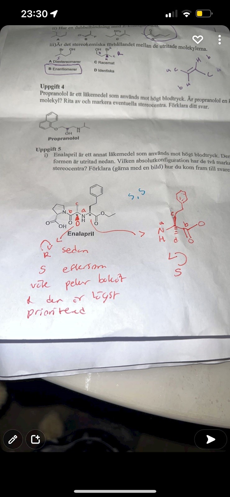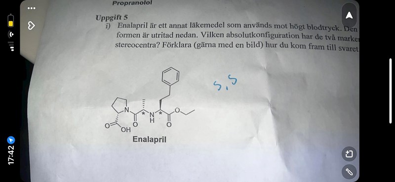 Hej, jag har en fråga angående den här frågan ja kom fram till att båda steroecentrana var S