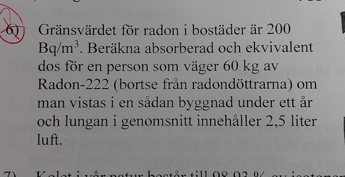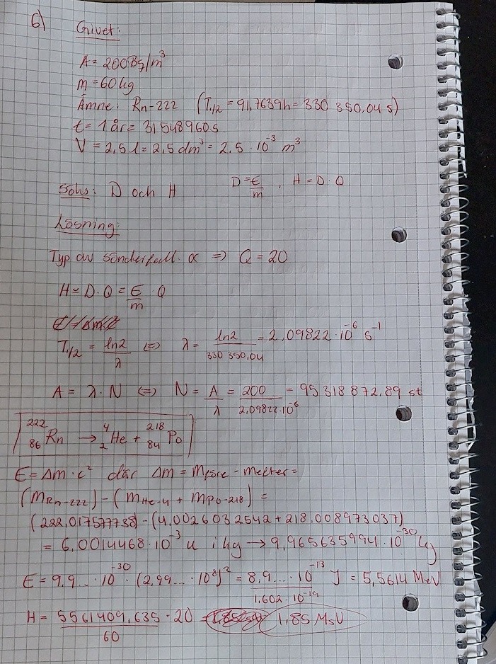 Hej! Jag fick fel värde på den ekvivalenta dosen, därför kunde jag inte gå vidare med beräkningen för att få fram den absorbersde dosen. Vad gjorde jag för fel? Tack på förhand!
