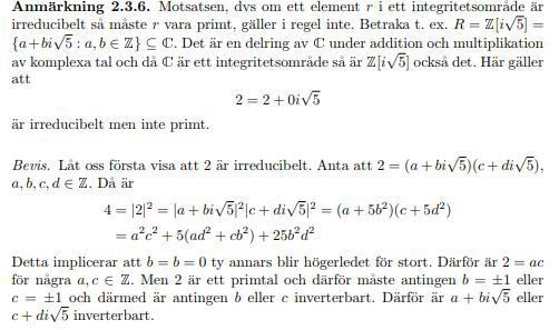 Abstrakt algebra: I ett I.D. är inte alla irreducibla element primelement