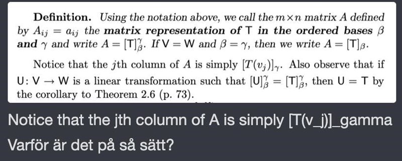 Notera att = e1 = fösta vektorn i standardbasen för = .