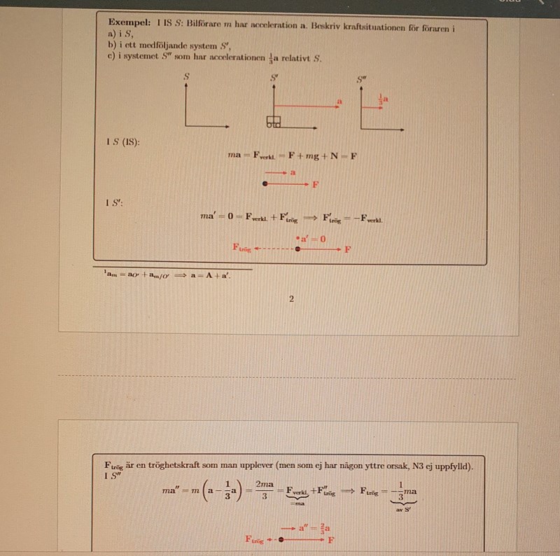 Acc. Referenssystem, verkliga krafter och tröghetskrafter