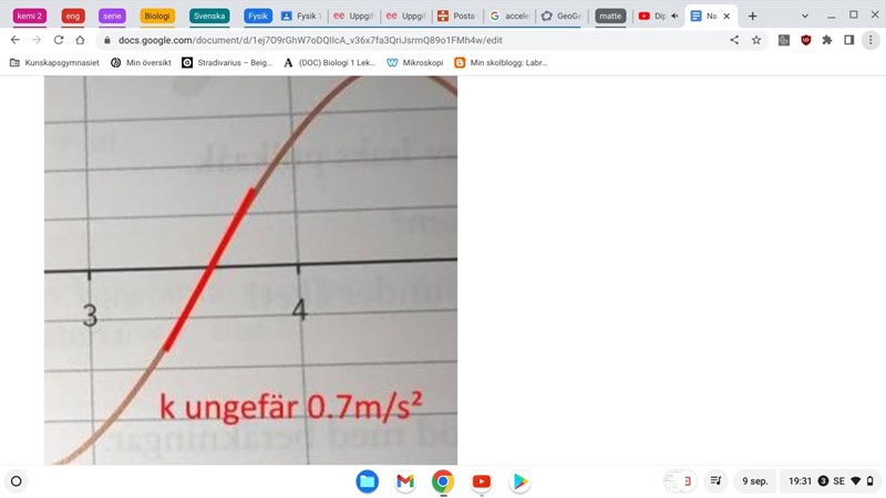 Jag vet att accelarationen är störst vid hastigheten 3,6 och att jag ska rita tangent där, behöver bara hjälp med vilka punkter i tangeten jag ritat som jag ska välja för att få fram 0,7