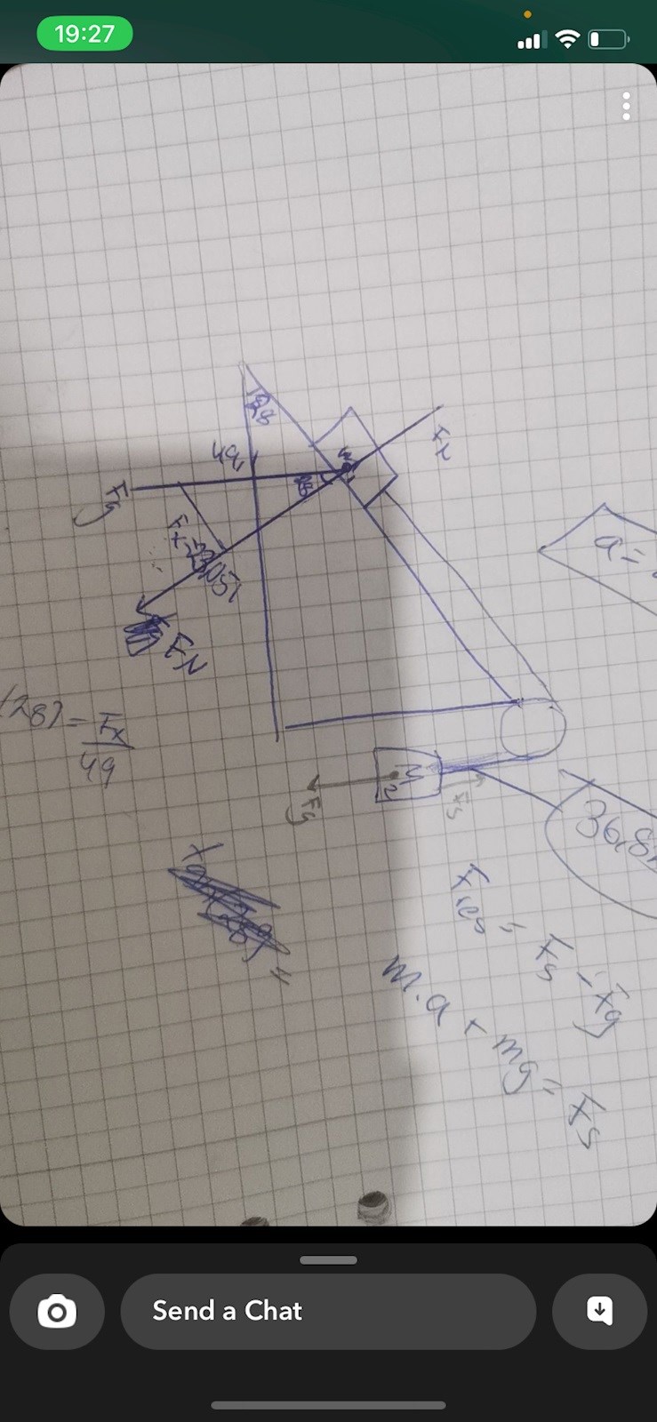jag har skrivit krafterna för båda komposanterna kan du förklara vad jag ska göra vidare och vad du menar med kraften från snöret