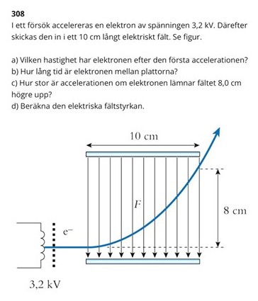 Jaha, jag tolkade U som 3200 men accelarationspänning och spänningen mellan plattorna är inte densamma. Men d har vi väl och den är 0,08m. Tack för hjälpen!