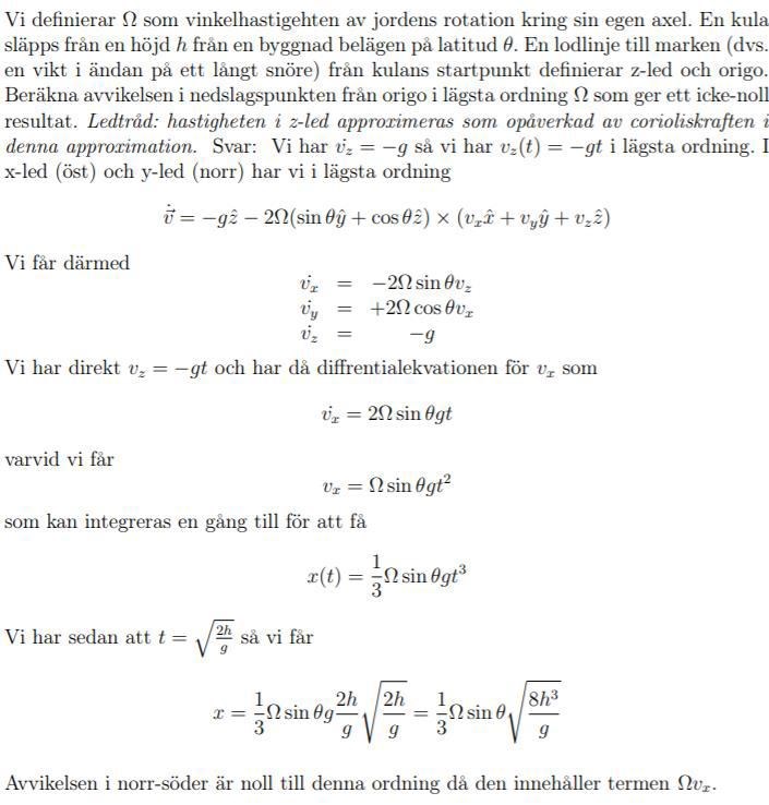 För att detta skall matcha lösningsförslaget måste , men då har vi fortfarande fel tecken på Coriolistermen.