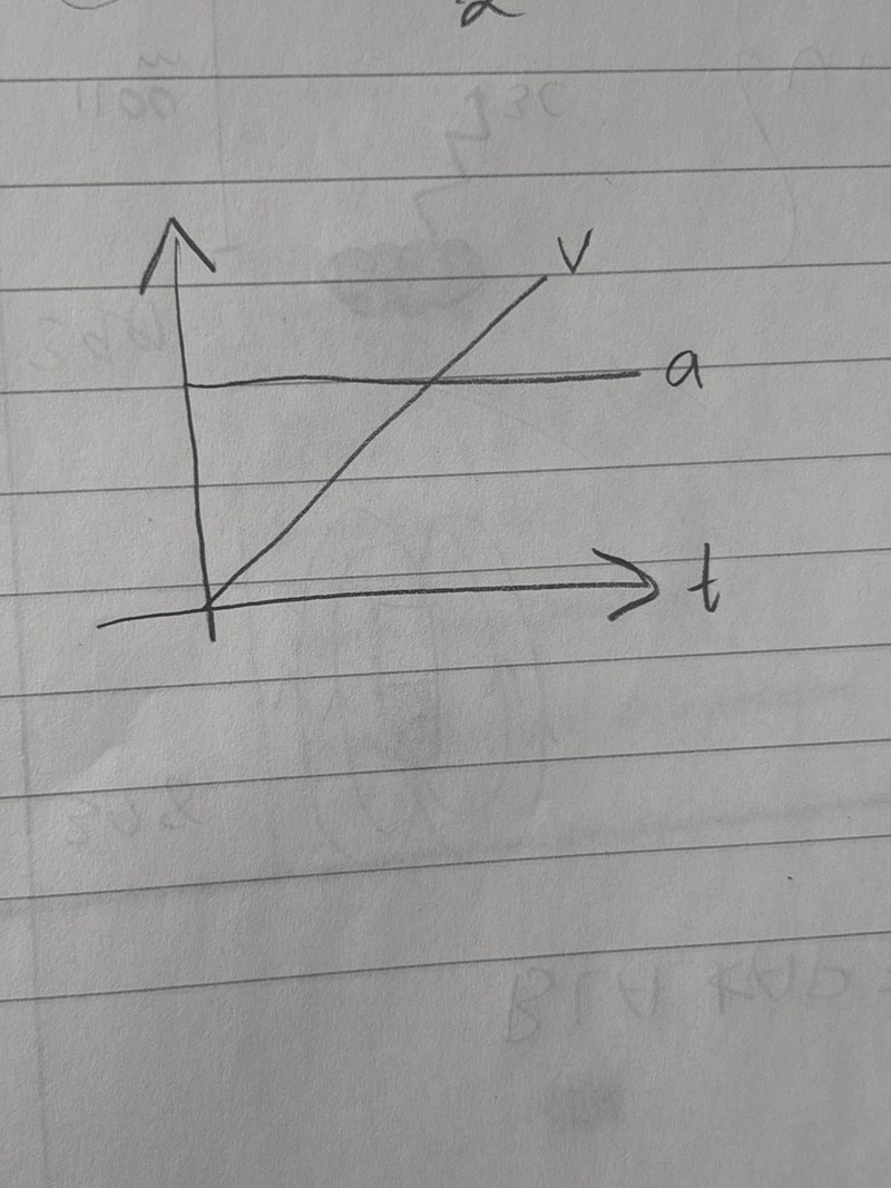 Om accelerationen är derivatan av hastigheten hur ser det ut i ett diagram om hastigheten ökar linjärt? Är det såhär?