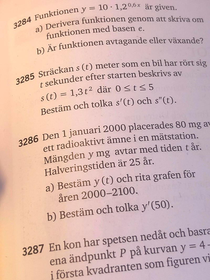 På uppgift 3285 så undrar jag hur vi kan få en acceleration av att derivera en hastighet. Om jag deriverar första derivatan (som är en hastighet) får jag 2,6. Men om man deriverar m/s (från första derivatan), hur blir enheten m/s^2?