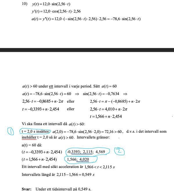 Först har de räknat ut för vilka tidsintervall andraderivatan har ett värde som är större än 60. Därefter väljer de ett värde nuti detta intervall och kollar så attdehar hamnat rätt, d v s att andraderivatan är större än 60. De värden du undrar omhar de räknat ut i första stycket - här sätter de in några olika värden på n.