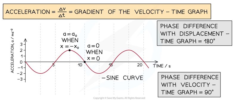 Det beror på hur koordinatsystemet är definierat. Om du definierar vänster som negativ riktning kommer amax\displaystyle \vec{a}_{max} uppträda då förflyttningen är åt vänster (eftersom accelerationen är motriktad rörelsen).