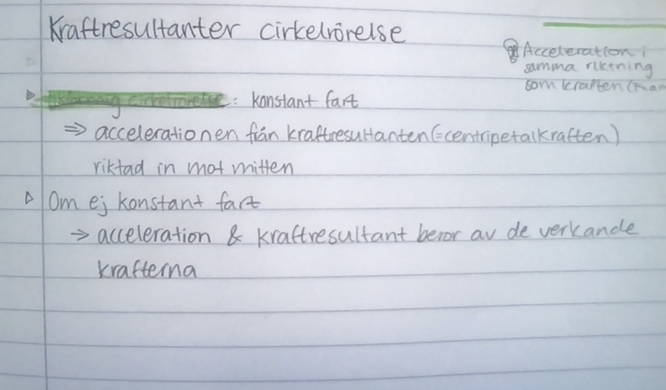 - Centripetalacceleration=RESULTERANDE accelerationen