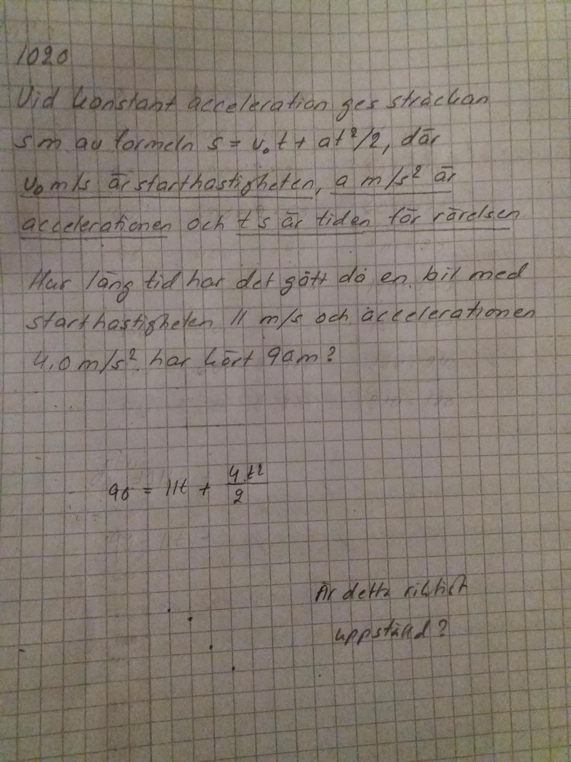 Jag ville veta det, om det var rätt uppställd. Jag ska räkna det här. Har inte kommit något vart med uppgiften ännu. Ställde bara en fråga än så länge.