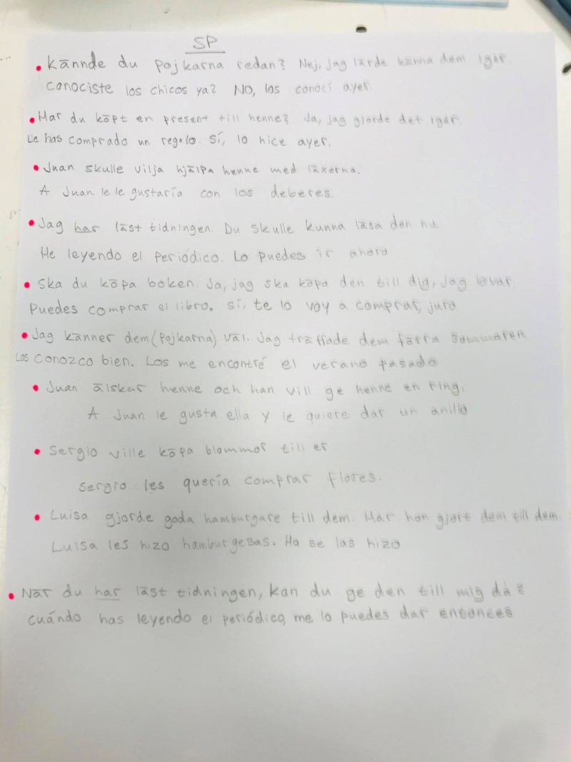 jag har fått några frågor som jag ska översätt till spanska dock är jag osäker på ifall jag gjort rätt. Någon som kan titta igenom.