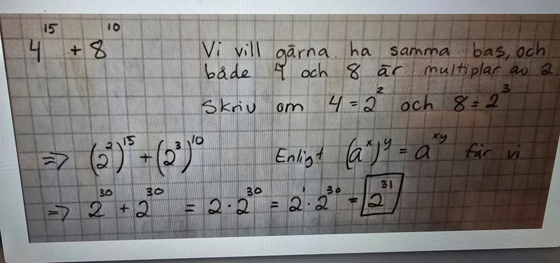 Gäller då potenslagen a^x+a^x=a^1×a^x?
