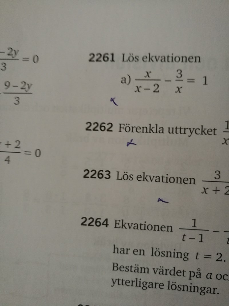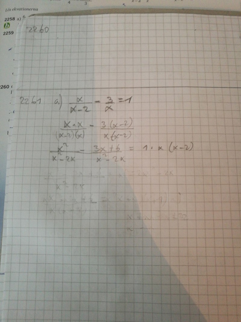 Multiplicera nu allt med x*(x-2) och förenkla.