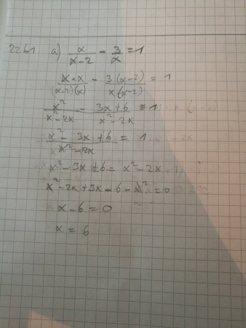 x*x/(x*(x-2)) - (x-2)*3/((x-2)*x) = 1