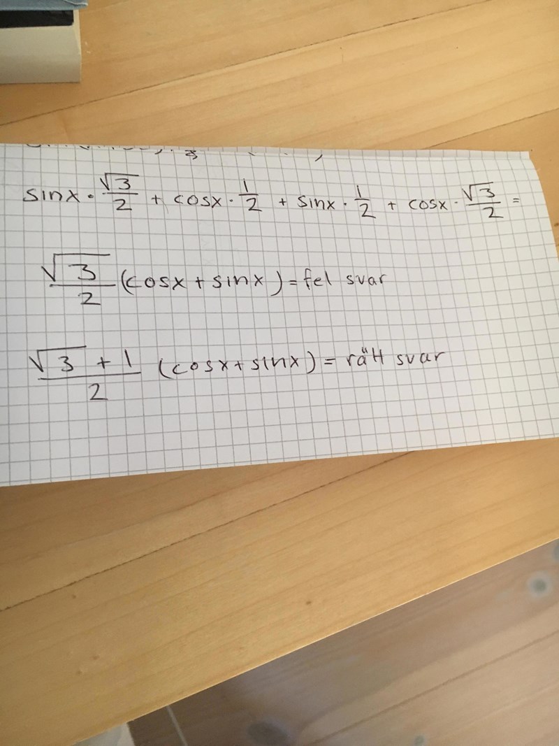 från första termen och från tredje. Hur många sinx är det totalt? Dvs, vad blir ?