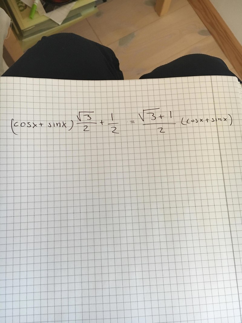 Var kommer kommer ettan ifrån? Är den där för att den också skall multipliceras in i (cosx+sinx)?