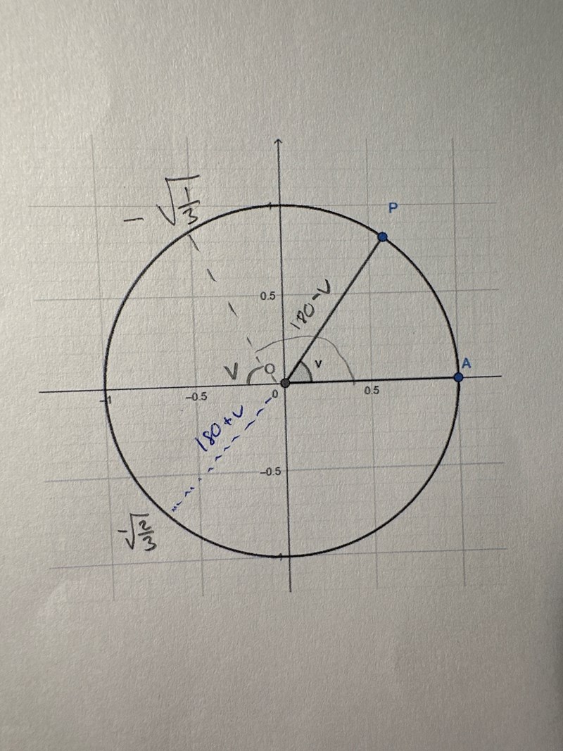 - 180°+v: Utgå från 180° och öka vinkeln med v.