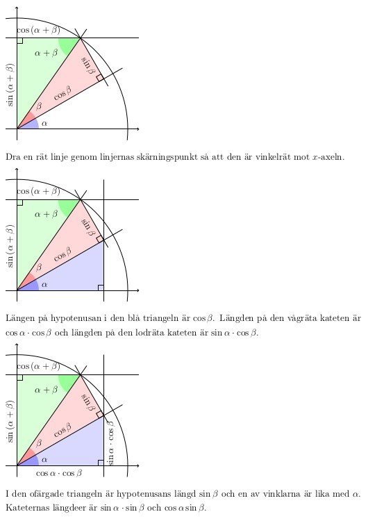 Vilket är det vi vill hitta en formel för. Och då har vi alltså att , som vi ytterligare kan förenkla med additionssatsen.