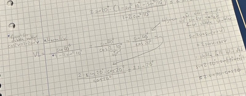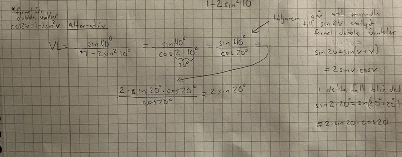 VL = (2 sin20° cos20°) / cos20° = 2 sin20° = HL
