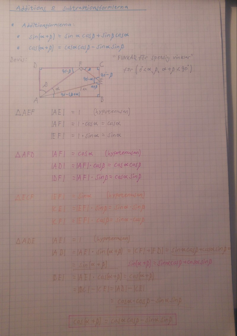 Allra sist gör man samma sak fast med en annan sida för att bevisa additionssatsen för cosinus.
