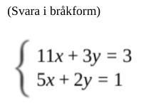 Hej jag försökte lösa denna genom att tänka vad deras minsta gemensamma multipel (tror jag det heter?) är fick det till 55 då båda är primtal så deras gemensamma tal borde vara 55 för 11x5. Försökte sedan lösa ut den på det viset men får inte rätt svar min lärare har gjort att man i ekvation ett ska multiplicera med 2 och i ekv 2 ska man multiplicera med -3. Fattar inte varför, hur ska jag veta vad jag ska multiplicera med när talen är primtal är väldigt förvirrad.