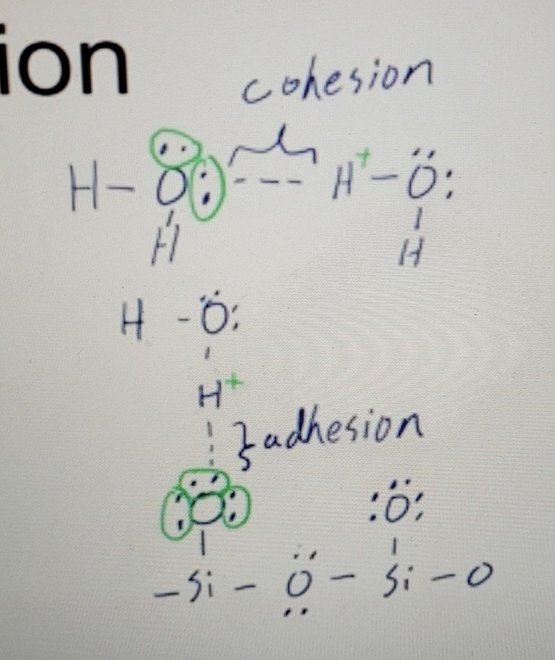 * Hur kmr det sig att adhesionskraft är starkare än cohesion om man enbart tittar på elektronparen? Har det något med elektronegativitet att göra?