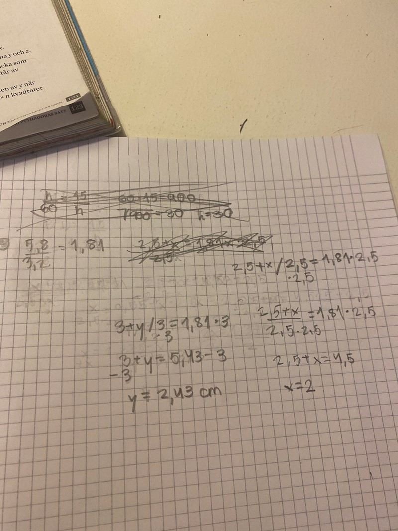 Men för x gäller istället (2,5+x)/x = 5,8/3,2