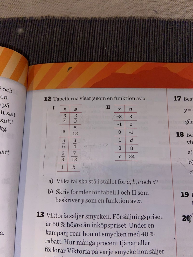 Börja med att skriva om tabellen med samma nämnare på alla tal.