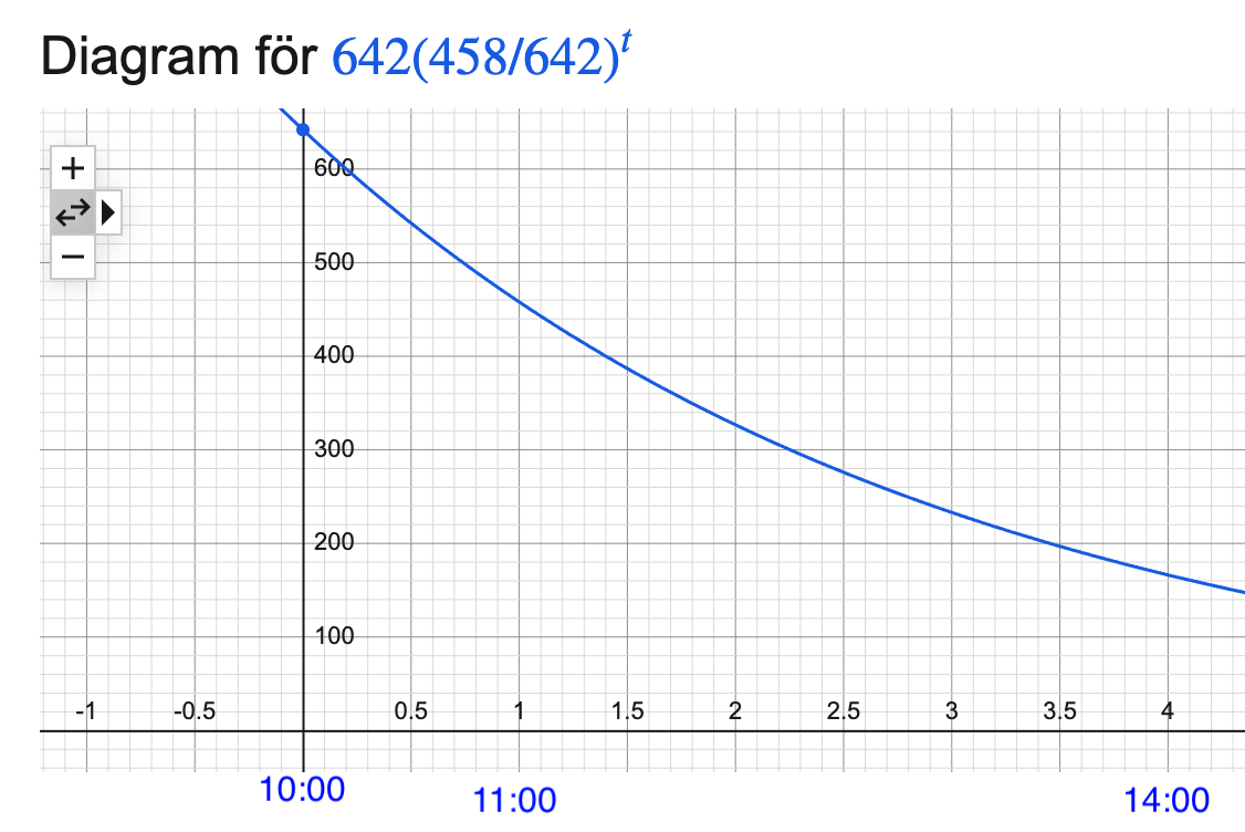 Ja, det stämmer att halveringstiden är ungefär 2 timmar, det kan du se av att .