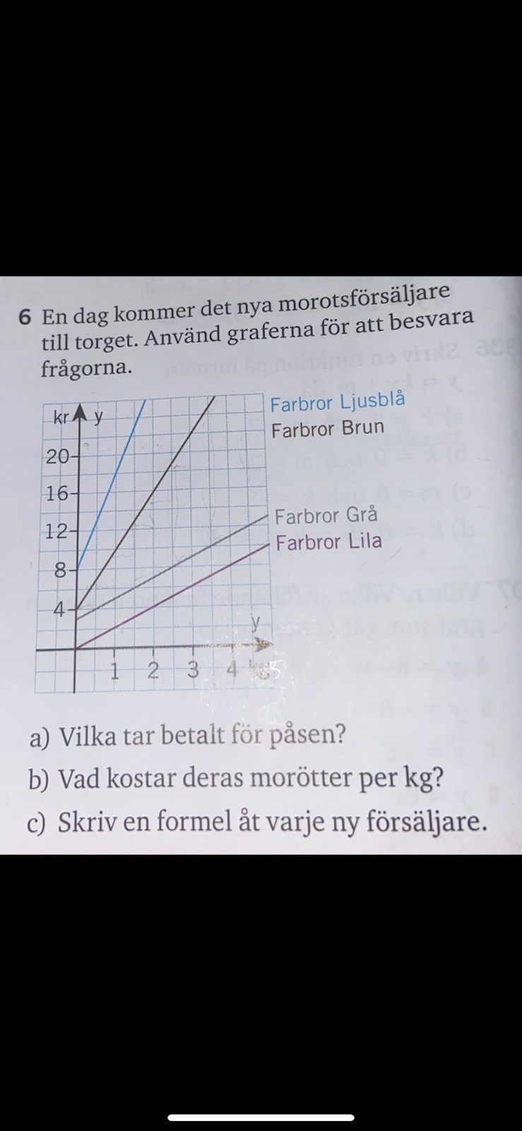 kan någon hjälpa mig med b) och c) hur ska jag göra för att veta Tex: farbror ljusblå och brun hur mkt dom betalar per/kg