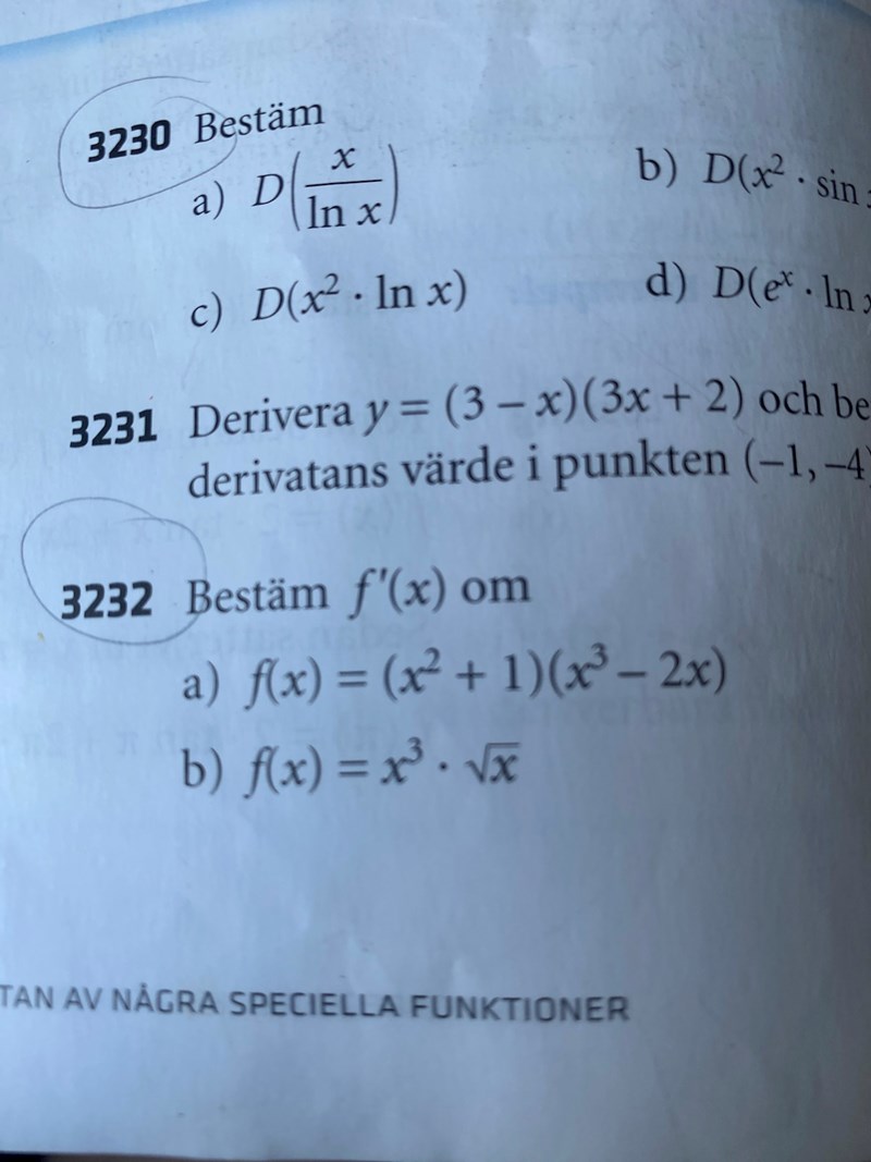 b-uppgiften löses enklast genom att du först skriver om uttrycket till en enda x-term med hjälp av en potenslag (tips: ) och sedan deriverar den termen.