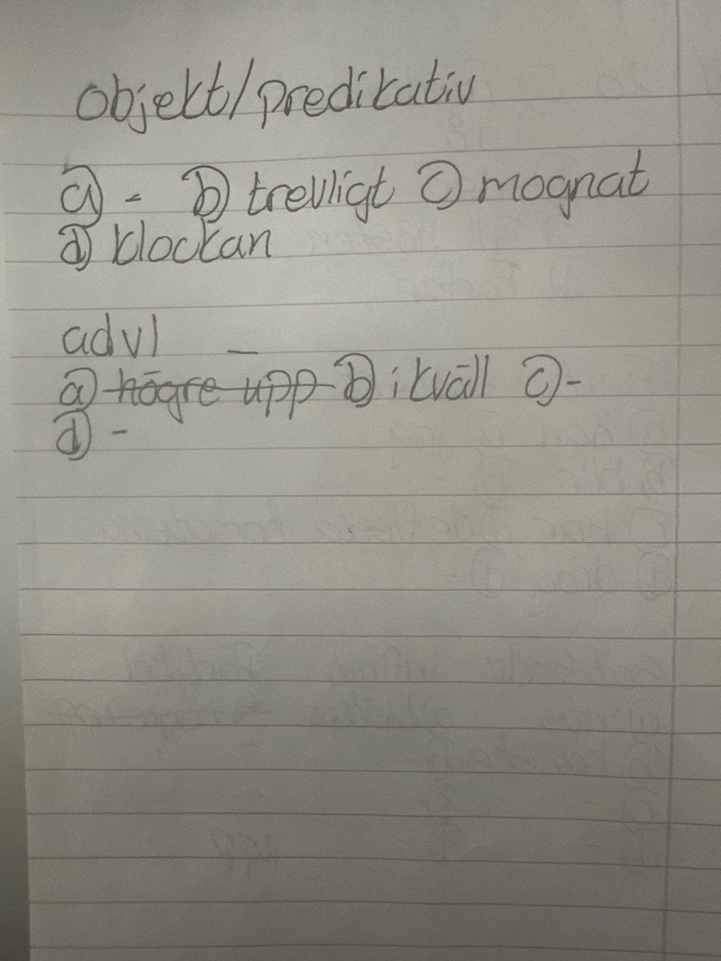 Bilderna är från quizet där jag ska fylla i meningarna i satsschemat