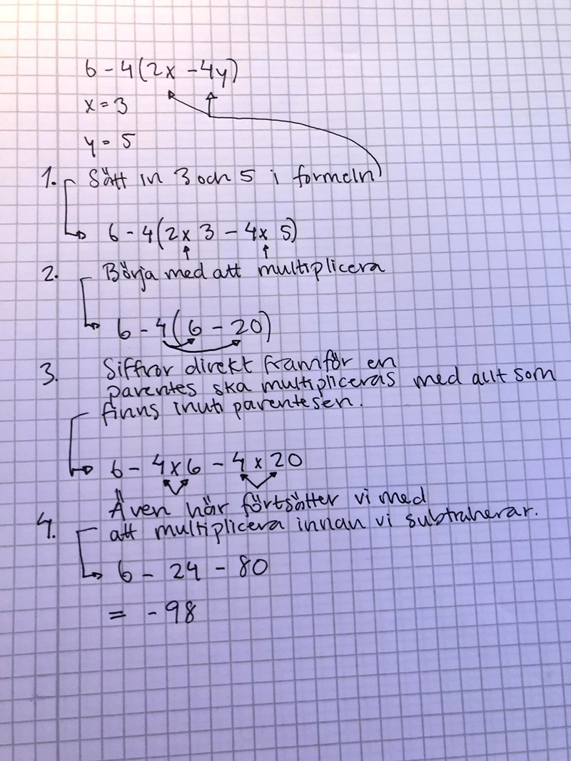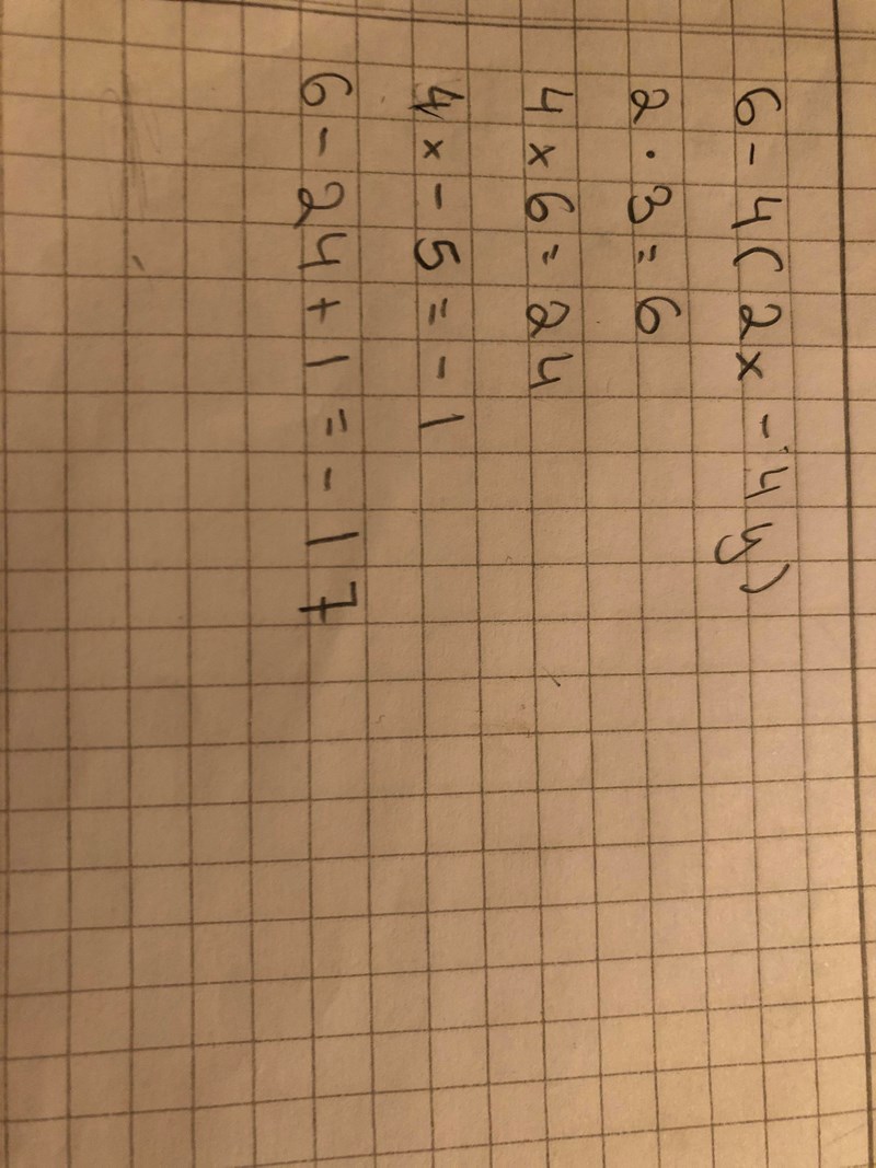 Du måste multiplicera -4 med alla termer i parentesen. Kom ihåg om du har ett minus framför en parentes så måste du byta alla tecken inom parentesen.