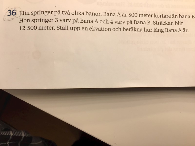 Jag skulle börja med att anta att bana A är a meter. Hur lång är då bana B?
