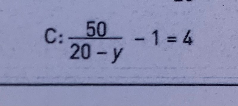 Så då ska det stå 50/20-y • 20-y = 5(20-y)?