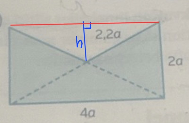 Jag har kallat höjden h (blå). Den är inte 2,2a.
