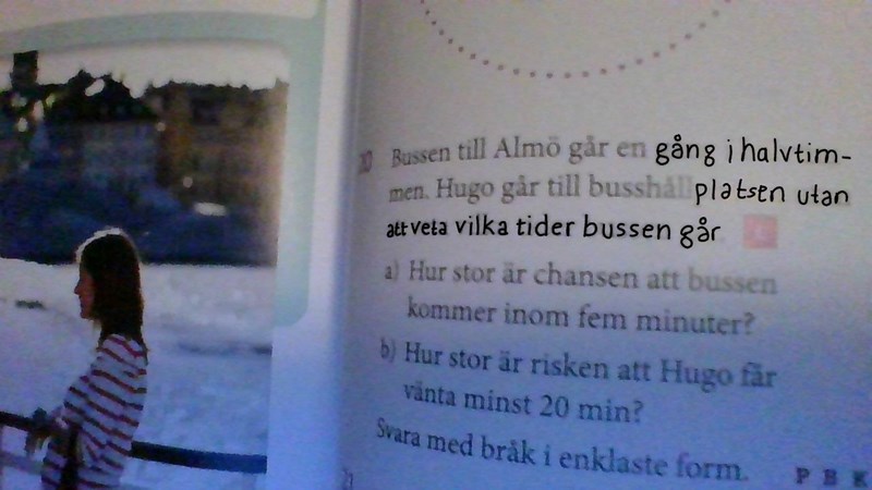 Hur många minuter är det däremellan? Hur stor andel av totala tiden(en halvtimme) utgör den tiden?
